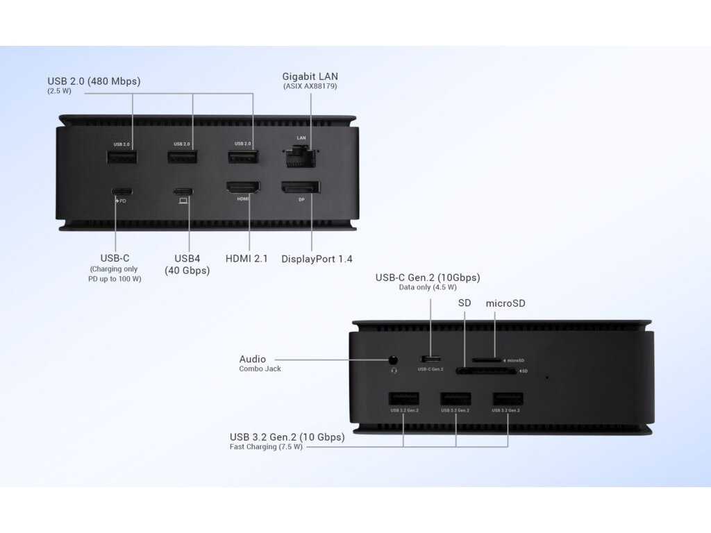 • Nejnovější a nejrychlejší generace technologie USB je konečně tady. Nejvýkonnější USB dokovací stanice, super-rychlý přenos dat a podpora až 8K* rozlišení.
