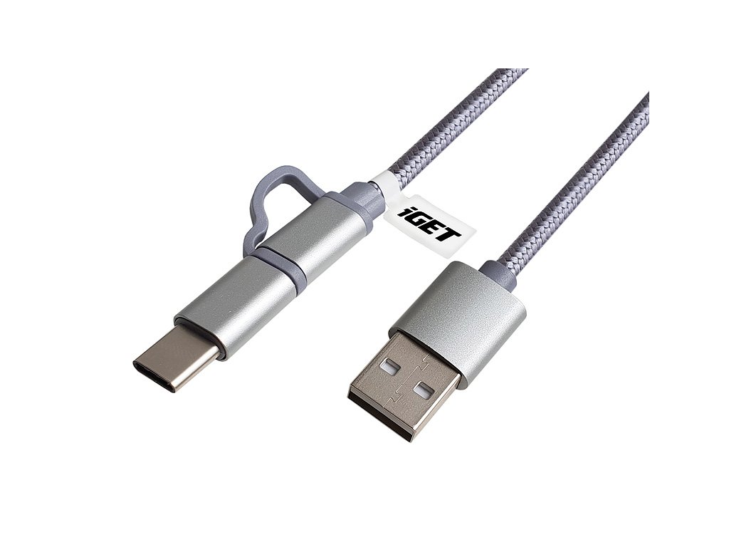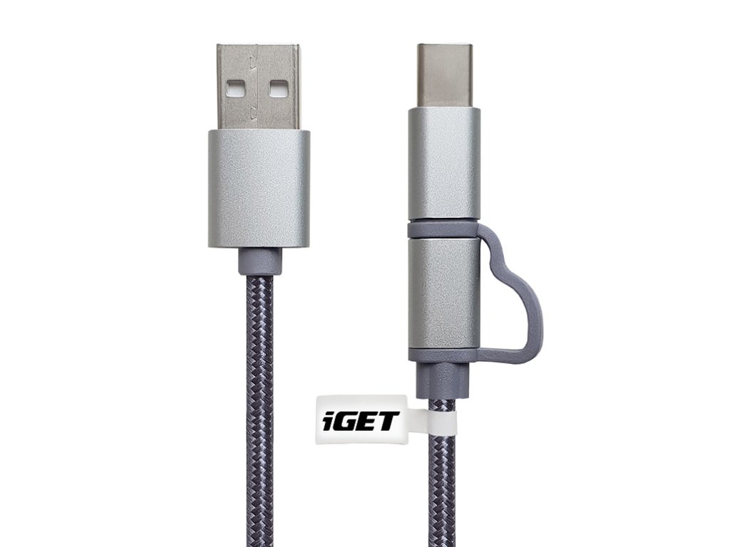 iGET G2V1 - USB kabel Micro USB/ USB - C dlouhý pro veškeré mobilní telefony, včetně odolných
