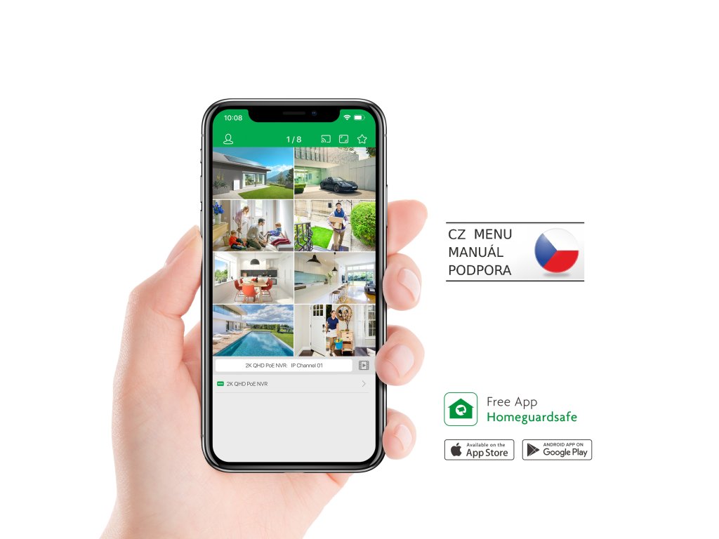 - Aplikace: zdarma aplikace "Homeguardsafe" pro snadný přístup z vašeho smartphonu/tabletu s podporou Android a iOS z celého světa,