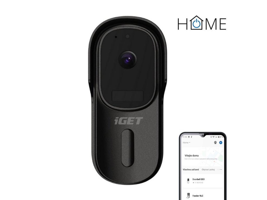 iGET HOME Doorbell DS1 Black - WiFi bateriový videozvonek, FullHD, obousměrný zvuk, CZ aplikace