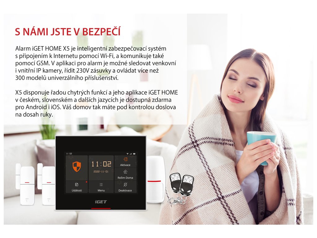 iGET HOME X5 Advanced - Inteligentní Wi-Fi/GSM alarm,v aplikaci i ovládání IP kamer a zásuvek,CZ app