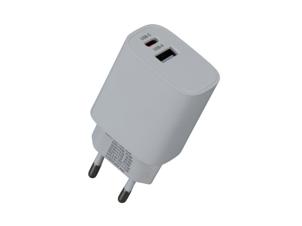 - Duální porty USB-C a USB-A umožňují nabíjet dvě zařízení současně
