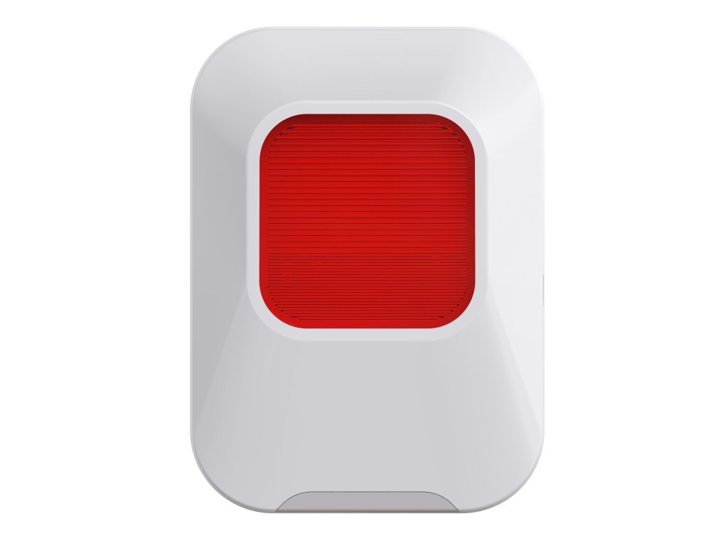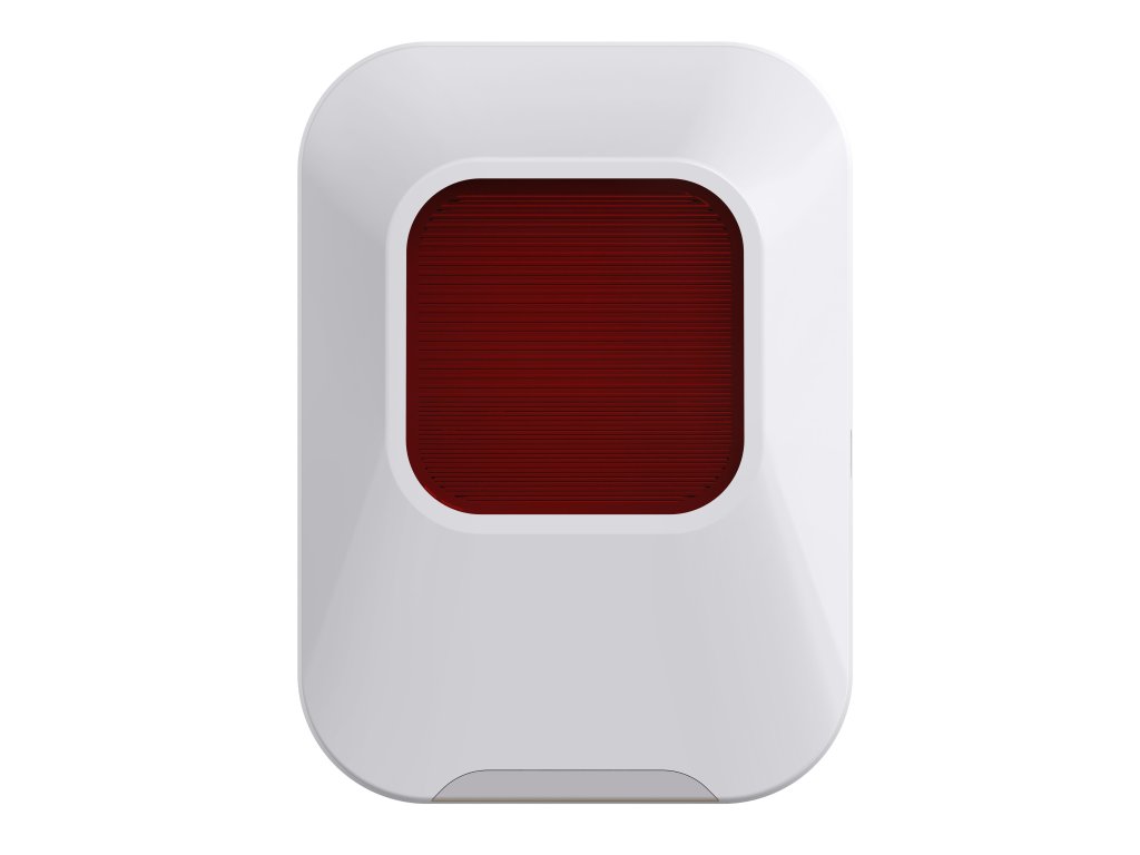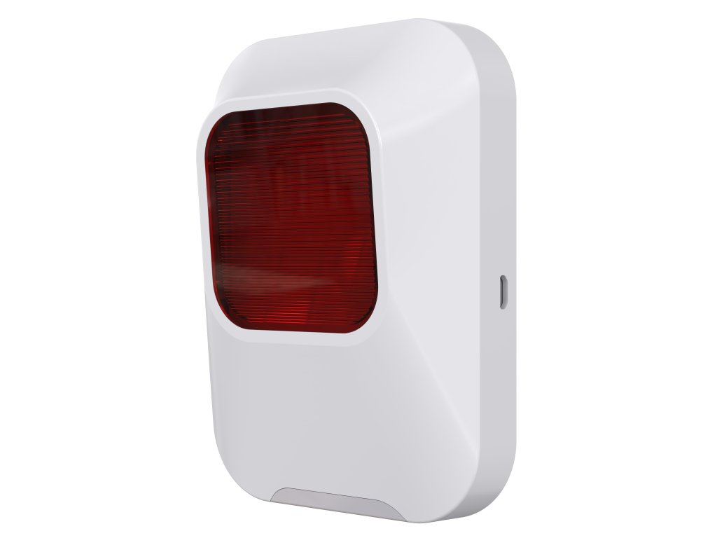 Siréna je napájená z baterií 3ks AA nebo z microUSB portu. Balení obsahuje baterie a také USB-microSUB kabel. Vzdálenost umístění od hlavní jednotky až 1 km. Indikace stavu ve kterém se alarm nachází díky barevnému LED pásku (červená, modrá zelená). Při slabé baterii informuje alarm pomocí notifikace aplikace nebo SMS zprávy.