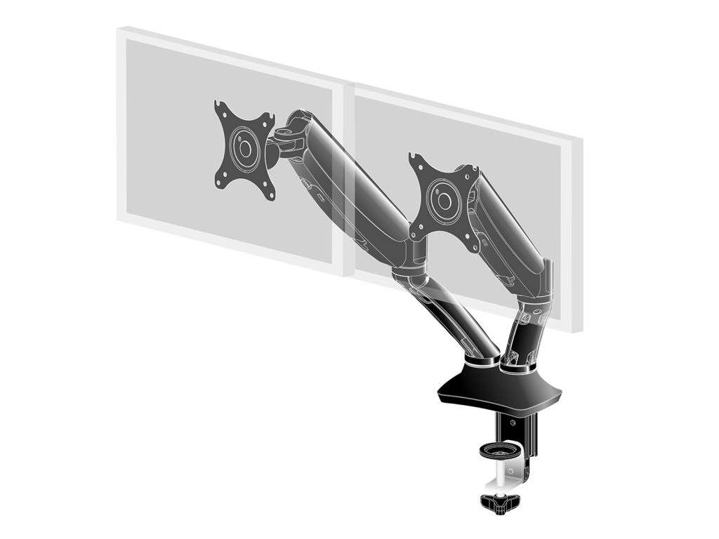 Elegantní a stylové rameno se dvěma plynovými pružinamiiiyama DS3002C-B1 je stolní držák (průchodka nebo svorka) pro dvě ploché obrazovky až do 27". Použitím ramene je zárukou, že získáte dodatečné místo na vašem stole a systém vedení kabelů pomáhá udržovat vaše pracoviště uspořádané. Ale co je důležitější, rameno nabízí široké možnosti nastavení, včetně naklonění, otočení, výšky a rotace. Můžete tak snadno upravit polohu obrazovky, dle vašich preferencích, a zároveň pomáhá ergonomickému držení těla.
