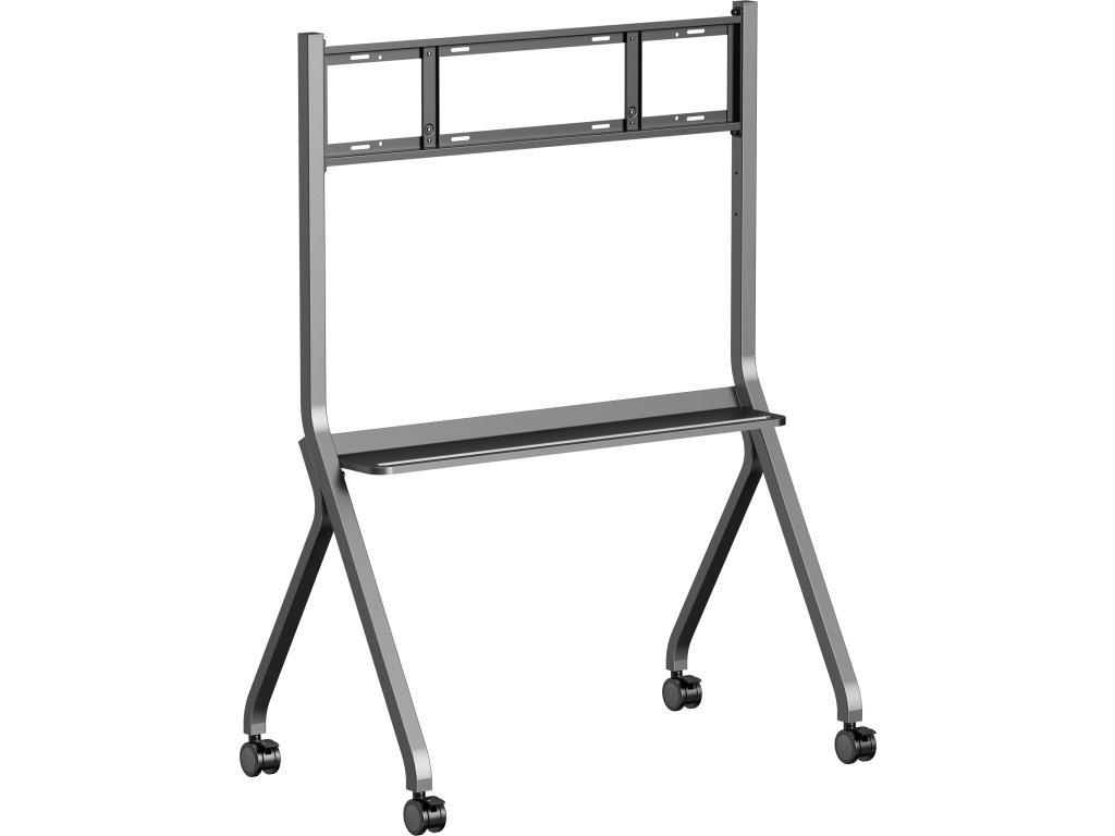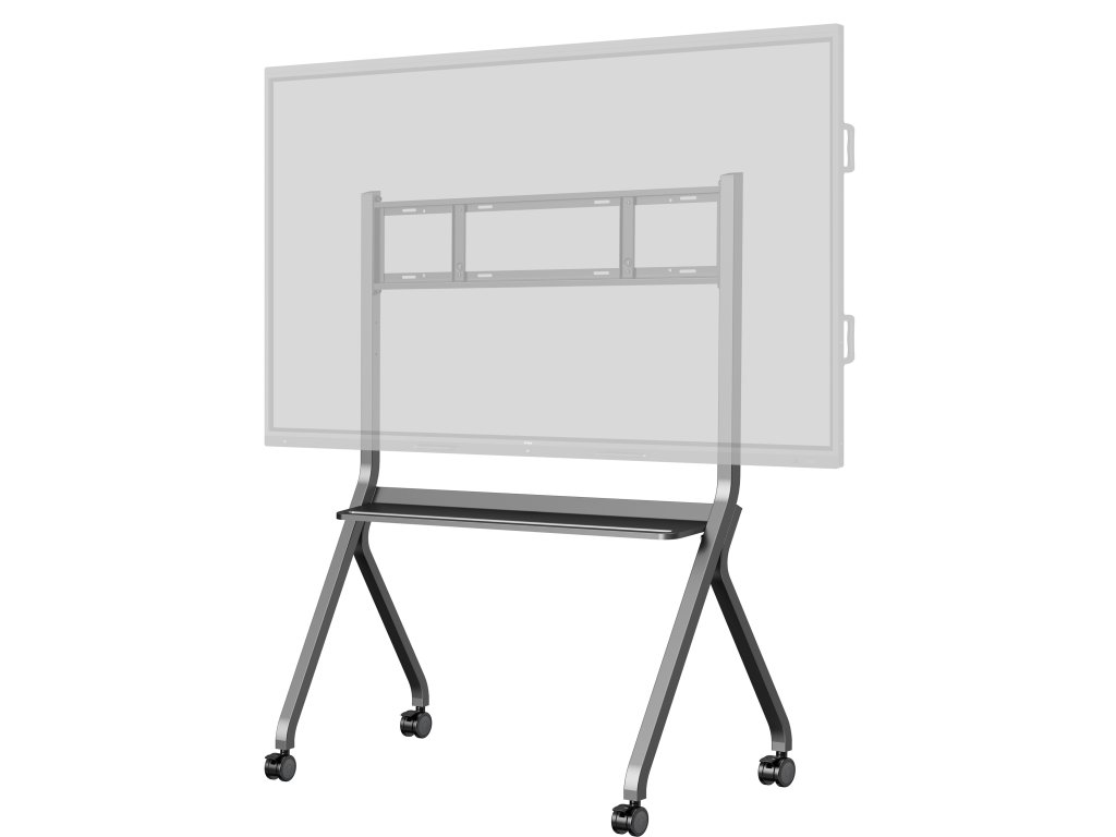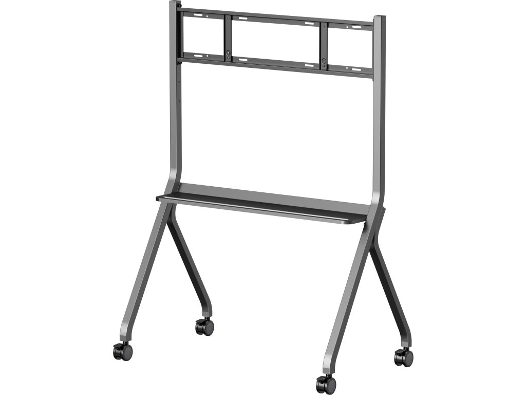 Mobilní stojan s policí na příslušenství pro (interaktivní) velkoformátové displeje až do 86"Mobilní stojan s ochranou proti kolizi, navržený pro velkoformátové (dotykové) displeje od 55" do 86", s nosností až 100 kg a podporou VESA uchycení až do 800×600 mm. Ideální do učeben, kanceláří a zasedacích místností. Vozík má předvrtané otvory pro rychlou a přesnou instalaci. V závislosti na velikosti displeje se doporučují tři montážní pozice pro zajištění optimální výšky sledování.