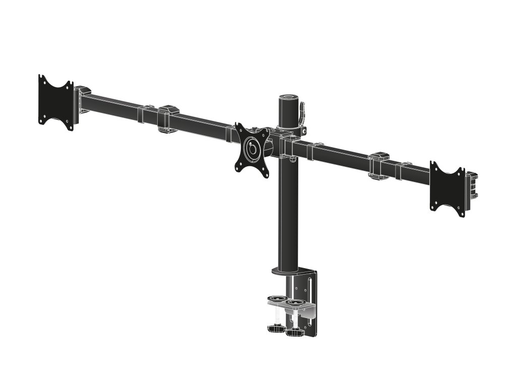 Iiyama DS1003C-B1 je montážní rameno k montáži na stůl z možnosti ukotvení až třech obrazovkek do 27". Paže šetří prostor na vašem stole a systém správy kabelů usnadňuje udržování pořádku. Široká škála možností nastavení, včetně vertikálního a horizontálního sklonu, výškového nastavení a rotace, umožňuje pohodlně nastavovat polohu obrazovek podle vašich preferencí a udržovat ergonomický, zdravý tělesný postoj.https://iiyama.com/gl_en/products/ds1003c-b1/