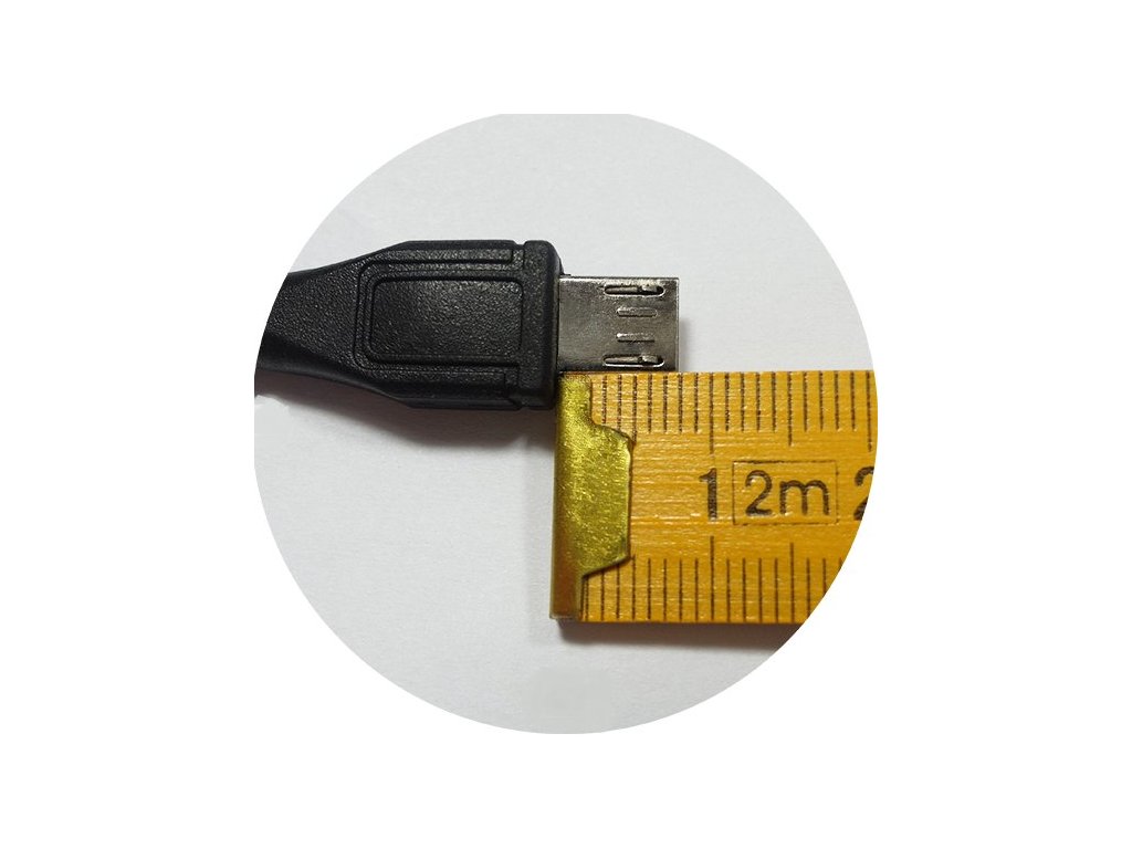 - Kabel má dlouhý micro USB konektor, vhodný pro zařízení a telefony, kam se nedá zastrčit standardní USB micro konektor vzhledem k pouzdru nebo umístění konektoru.