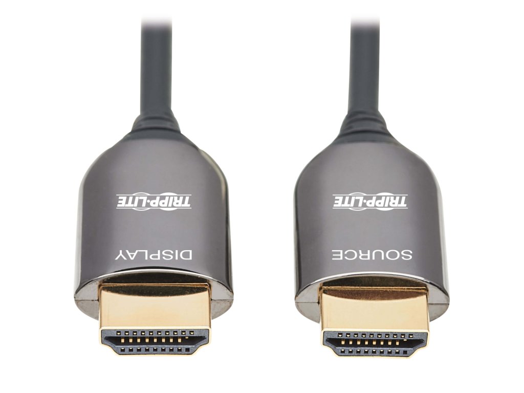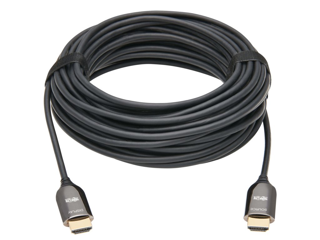 8K HDMI Plenum-Rated Fiber Active Optical Cable (AOC) - 8K UHD @ 60 Hz, HDR, M/M, Black, 15 m (49 ft.)8K optický kabel přenáší vylepšené UHD 8K video s dynamickým HDR a barvami 4:4:4 v aplikacích domácího kina a digitální reklamy.