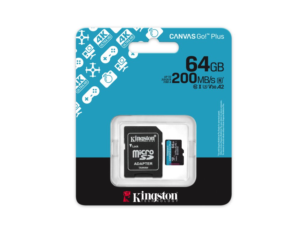 Kingston Canvas Go Plus A2/Micro SDXC/64GB/UHS-I U3 / Class 10/+ Adaptér