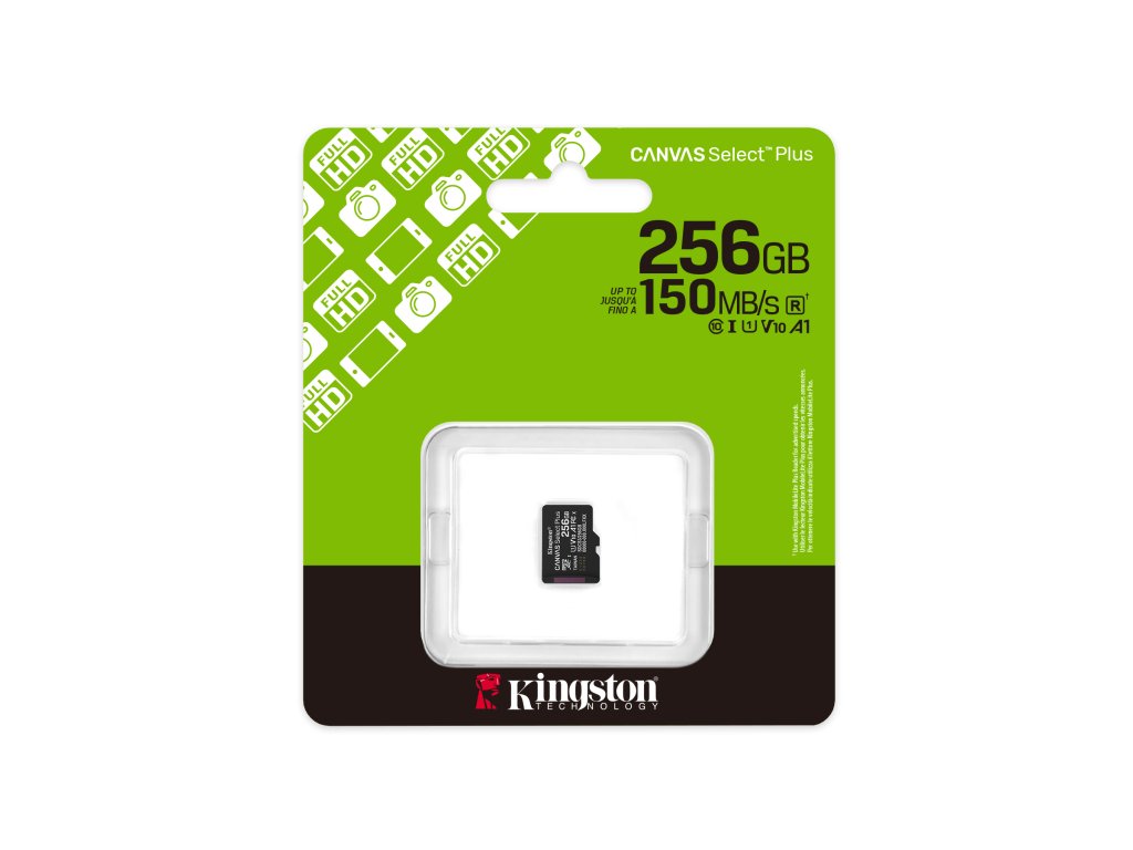 Karta microSD Canvas Select Plus od společnosti Kingston nabízí spolehlivý výkon, je kompatibilní se zařízeními se systémem Android a fotoaparáty a dosahuje rychlosti až 150 MB/s. Díky výkonu aplikací A1 zajišťuje plynulý multitasking a rychlé načítání. Je odolná a všestranná, takže je ideální pro každodenní potřeby úložiště.Paměťová karta microSD Canvas Select Plus od společnosti Kingston je kompatibilní se zařízeními se systémem Android a je navržena se zvýšeným výkonem na úrovni A1. Nabízí spolehlivou rychlost a velkou kapacitu pro rychlejší načítání aplikací a pořizování snímků a videí v kapacitě až 1 TB. Karta Canvas Select Plus microSD s vysokým výkonem, rychlostí a odolností je navržena tak, aby byla spolehlivá, takže si ji můžete vzít kamkoli s jistotou, že vaše fotografie, videa a soubory budou chráněny.