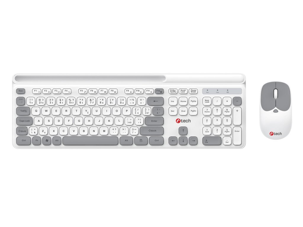 Klávesnice C-TECH Quallis WLKMC-05, bezdrátový combo set s myší, bílá, USB, CZ/SK
