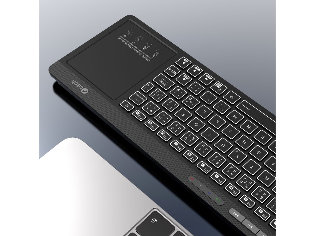 Klávesnice obsahuje plnohodnotný touchpad, který zcela nahrazuje externí myš. Můžete tak ovládat kurzor, klikání i základní gesta přímo z klávesnice – což je praktické zejména při ovládání chytré TV, tabletu nebo při práci v omezeném prostoru.