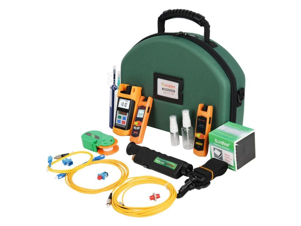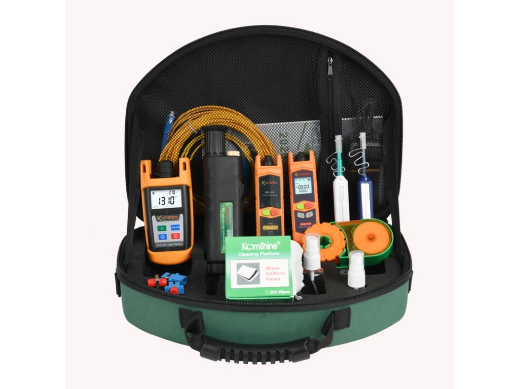 KOMSHINE • KLT-15D • Sada pro testování ztrát optických vlákenSada nástrojů pro výstavbu optických sítí KLT-15D je profesionální sestava nářadí pro testování ztrát optických vláken a údržbu telekomunikačních systémů.