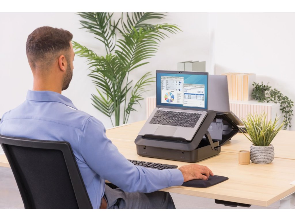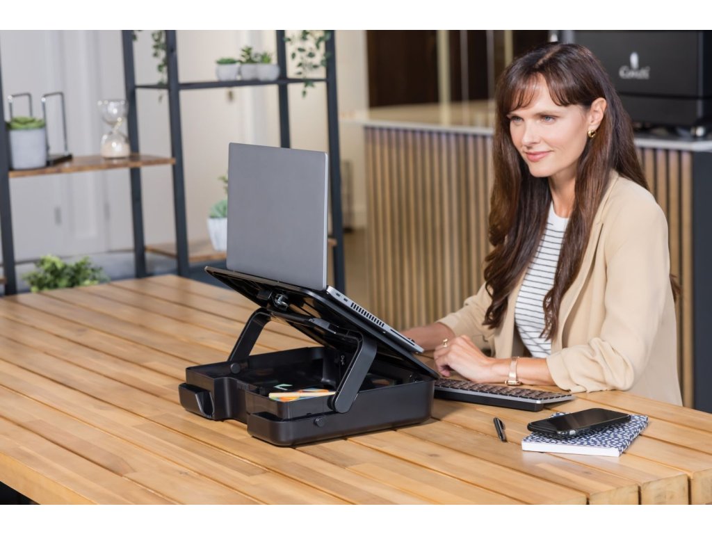 Dva produkty v jednom - uzavíraný ochranný kufřík se zabudovanou podložkou/stojanem pod notebook. Používání stojanu na notebook podporuje zdravější pozici při práci s notebookem. Redukuje napětí zad, uvolňuje napětí krční páteře a usnadňuje zachování správného držení těla. Kufřík se perfektně hodí pro flexibilní práci na různých místech.POPIS:
