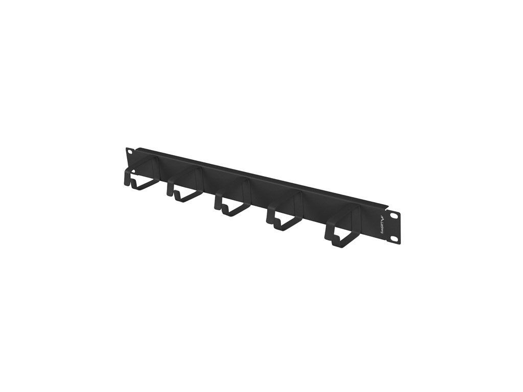 Organizér kabelů Lanberg 1U typu B, který se hodí do 19" skříní, vybavený 5 kovovými držáky pro správu kabelů.https://lanberg.eu/product-data/premium-description/5901969439403