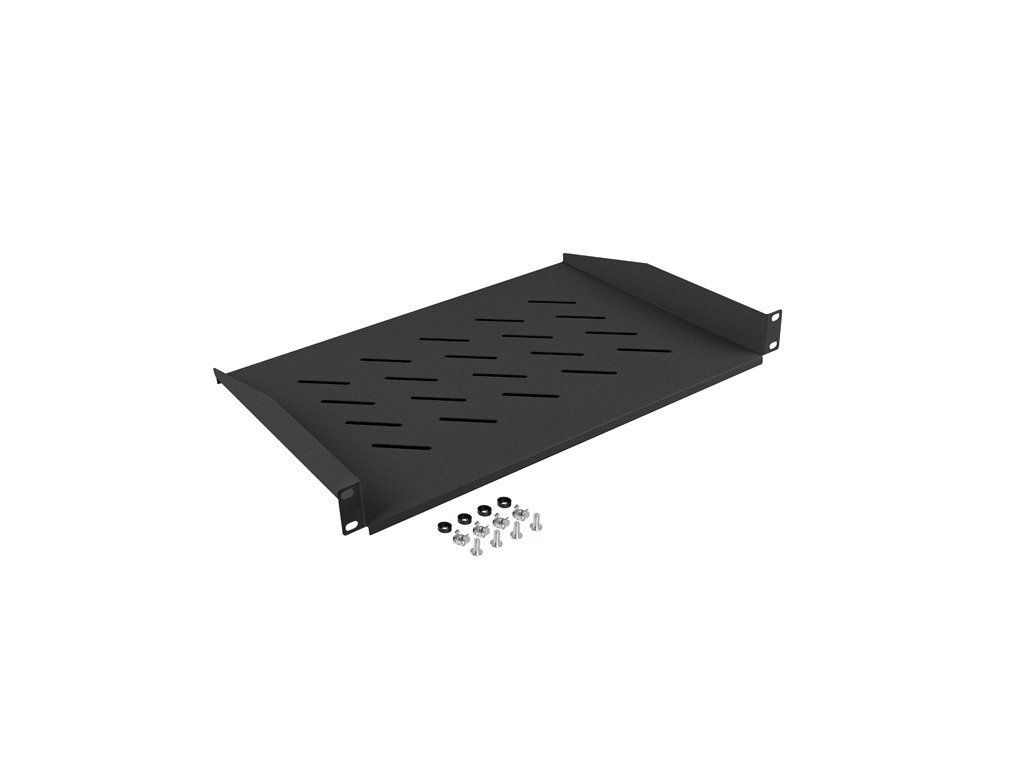 Univerzální police 1U vhodná pro 19" nástěnné a stojanové skříně Lanberg s hloubkou 450/600/800/1000/1200 mm.Specifikace