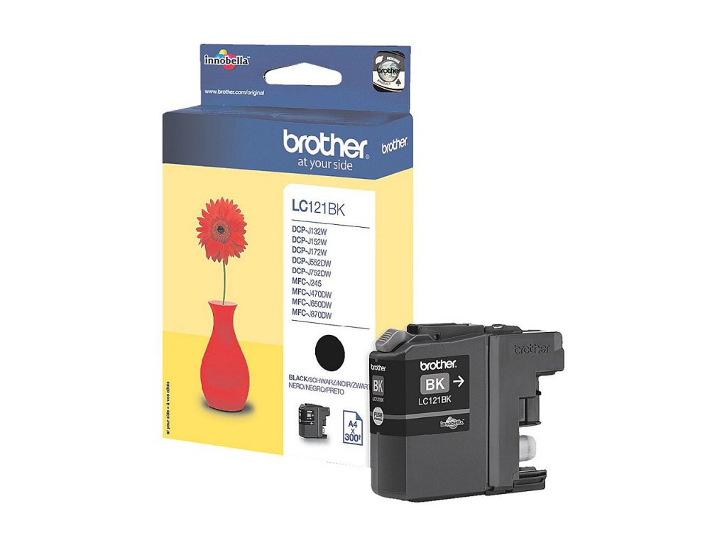 Firma Brother je společnost s dlouholetou tradicí, která se již dlouhou dobu zabývá výrobou tiskových zařízení, jako jsou tiskárny, faxy, psací stroje a multifunkční zařízení. Pro své produkty samozřejmě vyrábí i různé spotřební příslušenství. Výhodou originálního příslušenství je 100% kompatibilita s produkty a maximální kvalita tisku, kterou nelze s neoriginálním příslušenstvím dosáhnout.LC121Bk je černá tisková kazeta pro inkoustové tiskárny Brother s označením DCP-J132W/ DCP-J152W/ DCP-J172W/ DCP-J552DW/ DCP-J752DW/ MFC-J245/ MFC-J470DW/ MFC-J650DW/ MFC-J870DW. Pro tento inkoust se udává výtěžnost až 300 stránek při 5 % standardním pokrytí.