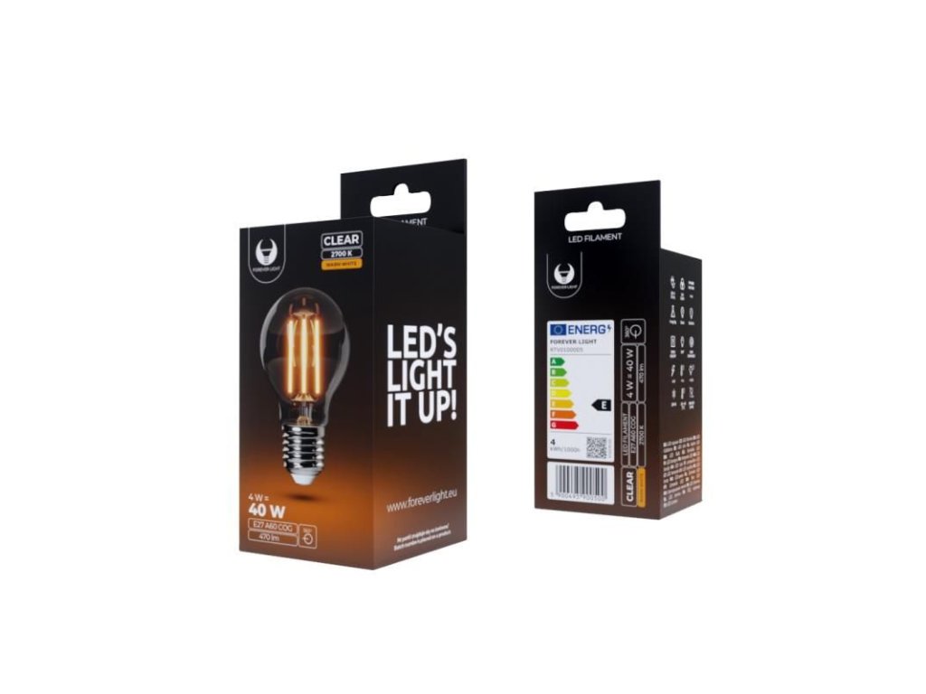 Žárovky LED Filament od společnosti Forever Light jsou produktem s jedinečnou estetikou. Jejich design zahrnuje velká LED vlákna podobná vzhledu klasických žárovek. Žárovky se vyznačují ultra teplým světlem podobným efektu wolframových vláken. Použitá technologie je unikátní kombinací mnoha čipů na rovném nebo zakřiveném povrchu pokrytém luminoforem. Jsou to ideální žárovky pro stylizované interiéry a dekorativní svítidla. Výrobek je k dispozici s průhlednou nebo tónovanou skleněnou baňkou. Žárovku s vláknem lze použít pro každodenní použití. Má nízkou provozní teplotu. Výrobek neobsahuje toxické sloučeniny olova a rtuti, nevyzařuje UV a IR záření.Klíčové vlastnosti