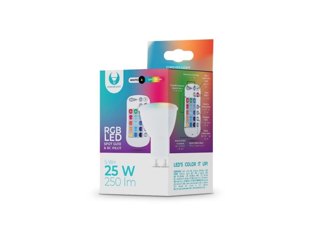 LED žárovka Forever GU10 RGB 5W s dálkovým ovládáním bílá