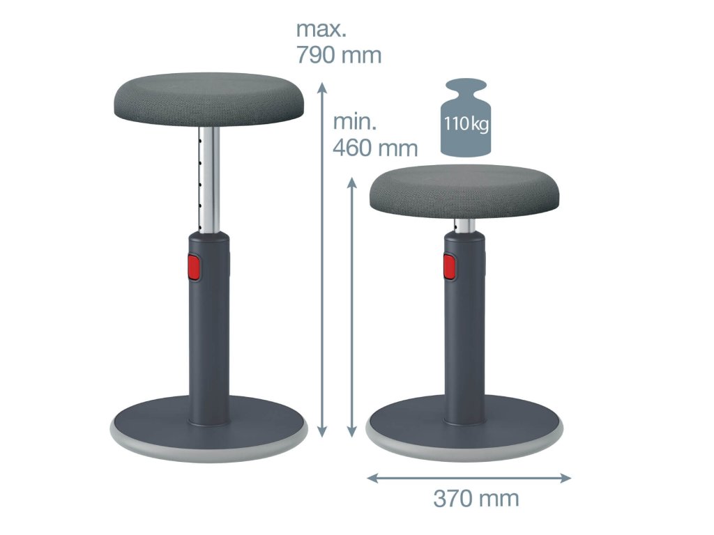 Ergonomická židle Leitz Ergo umožňuje flexibilitu pohybu mezi sezením a stáním při práci, podporuje pohyb svalů, zlepšuje držení těla a zvyšuje hladinu energie. Má zaoblenou základnu, která podporuje aktivní pohyb otáčením a houpáním. Zatímco pracujete, zároveň posilujete zádové svaly. Výšku lze snadno nastavit mezi 45-79 cm, stolička zůstává zůstane pevná a stabilní v jakékoli výšce. Stolička je pohodlná a praktická, má prodyšné 3D pěnové sedadlo potažené vzdušnou síťovinou a protiskluzovou základnu, která nepoškodí podlahu. Díky minimalistickému designu, matným povrchovým barvám a ergo řešení pomůže židle zlepšit zdraví a pracovní pohodu, a zároveň díky ní jednoduše vytvoříte správné a vhodné pracovní podmínky. Zkombinujte s dalšími produkty Leitz Ergo a získejte příjemný a flexibilní pracovní prostor, který vás udrží v pohybu a v pohodě po celý den.• Stylová a ergonomicky navržená židle vás udrží aktivní a produktivní po celý den