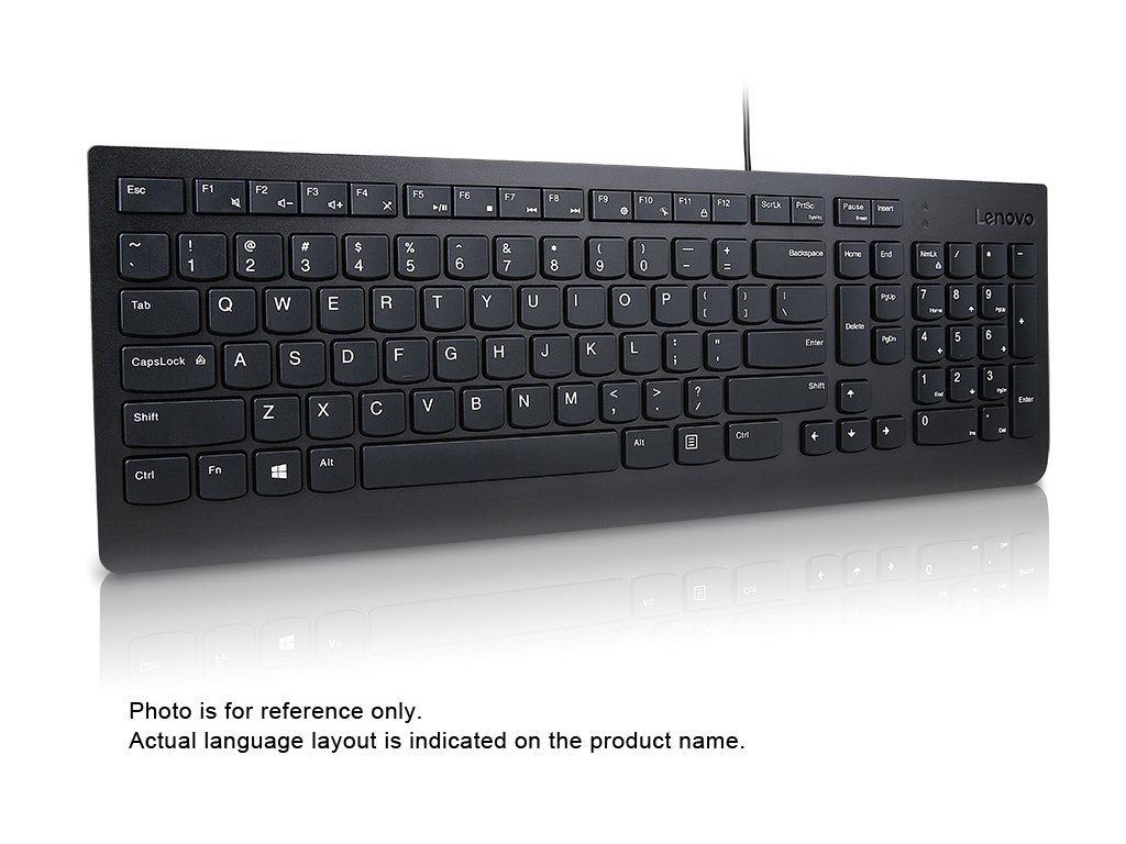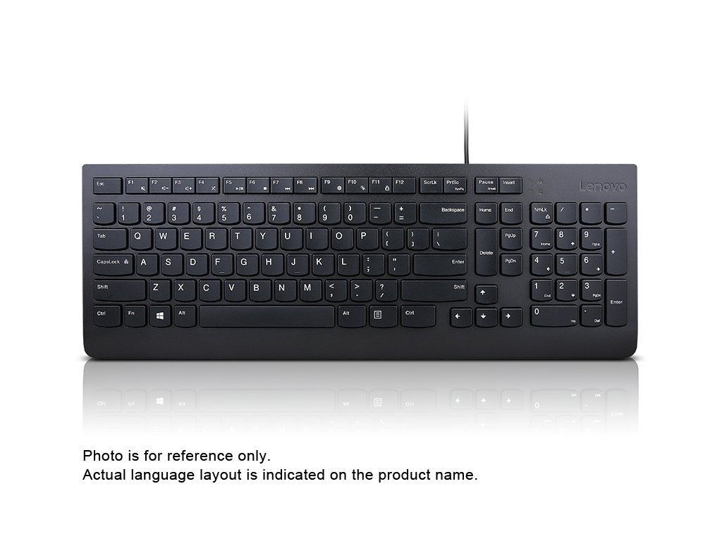 Lenovo Essential Wired Keyboard (Black) - Czech (ABB)Vychutnejte si spolehlivé a bezproblémové psaní s klávesnicí Lenovo Essential Wired Keyboard. Je odolná a konstruovaná tak, aby vydržela, s až 10M kliknutími pro každou klávesu, odolností proti polití a kabelovým připojením USB. Psaní ještě nikdy nebylo tak dobré díky tichým krytkám kláves a nastavitelným nožičkám pro celodenní pohodlí.