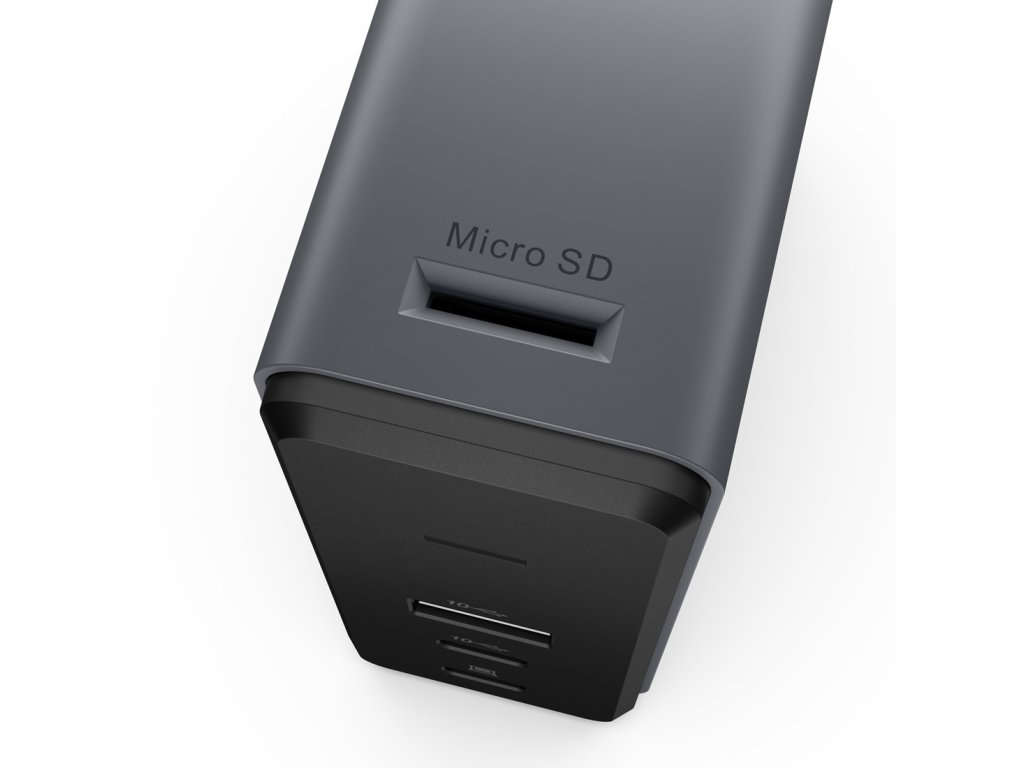 *napájeno technologií GaN - tato dokovací stanice vybavená nejnovější technologií GaN funguje jako napájecí adaptér i přenosná dokovací stanice