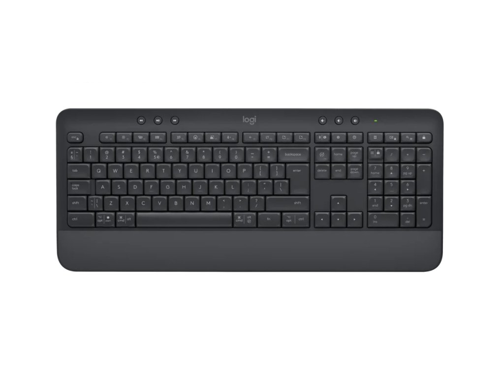 Klávesnice SIGNATURE K650 dokonale vyhoví vašim každodenním potřebám v práci díky vylepšeným zkratkám a integrované opěrce dlaně. Získejte pohodlí potřebné pro dlouhé hodiny práce u stolu. Díky provedení odolnému proti polití (až 60 ml), snadnému čištění a životnosti baterie 36 měsíců (Životnost baterie se může lišit v závislosti na uživateli a podmínkách používání) ji můžete pohodlně a snadno přenášet, aniž by vám překážely kabely.