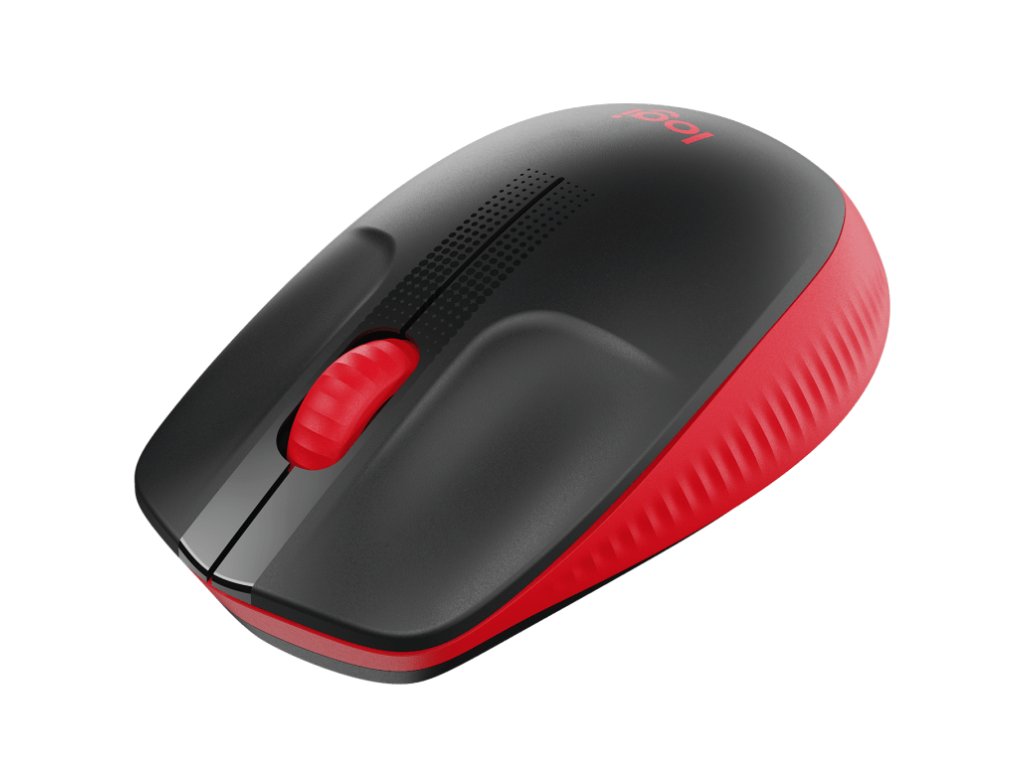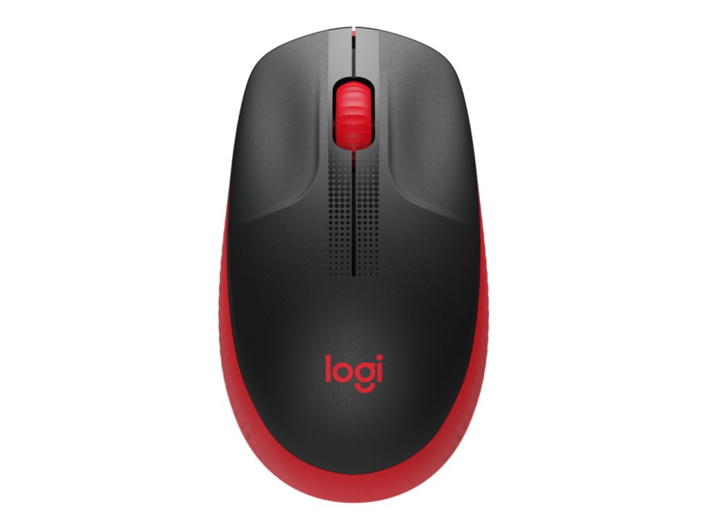 Logitech M190/Kancelářská/Optická/1 000 DPI/Bezdrátová USB/Černá-červená