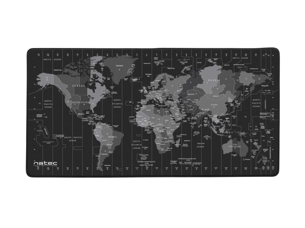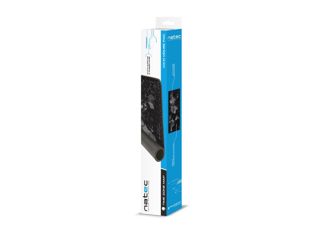 Natec Time Zone Map Maxi je unikátní podložka pod myš o maxi rozměrech 800x400 mm, na kterou se vejde nejen myš, ale i klávesnice, nebo notebook. Díky Maxi rozměrům chrání pracovní stůl před poškozením a její vysoce-kvalitní povrch a zpracování zvyšuje přesnost pohybů myši a snižuje tření mezi myší a povrchem, co ulehčuje pohyb.