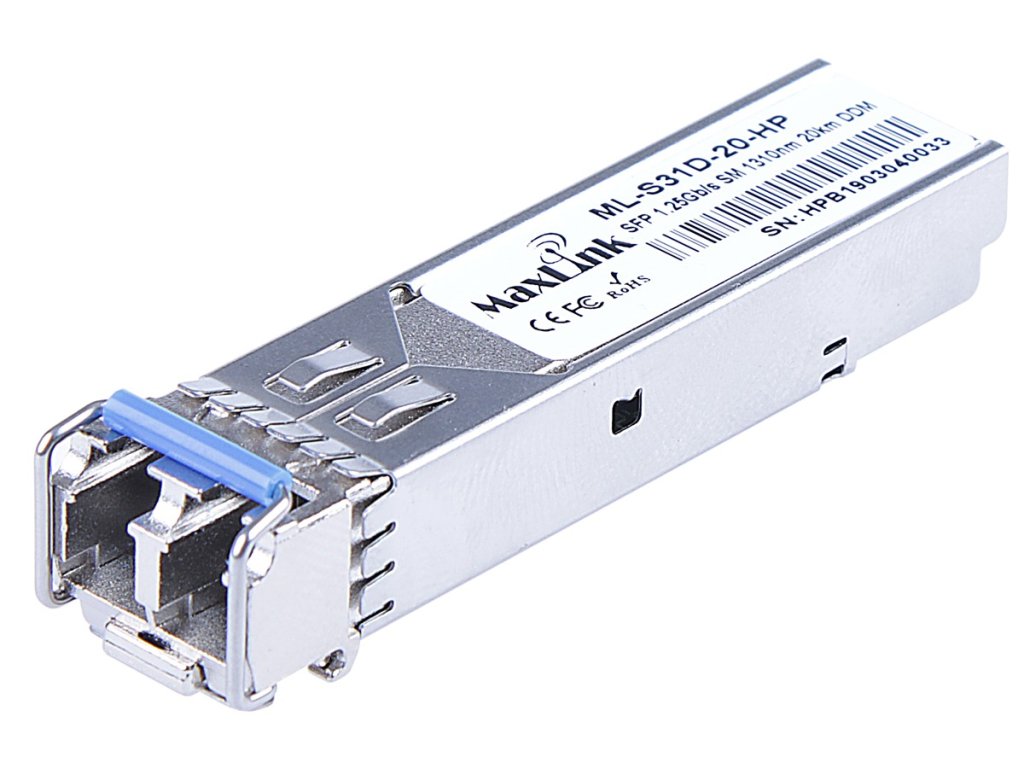 ML-S31D-20-HP je 1.25G SFP modul s 1310nm vlnovou délkou, dvěmi LC konektory a maximální vzdáleností 20km po singlemode optickém vlákně. SFP modul podporuje monitoring, neboli DDM funkci.Optika