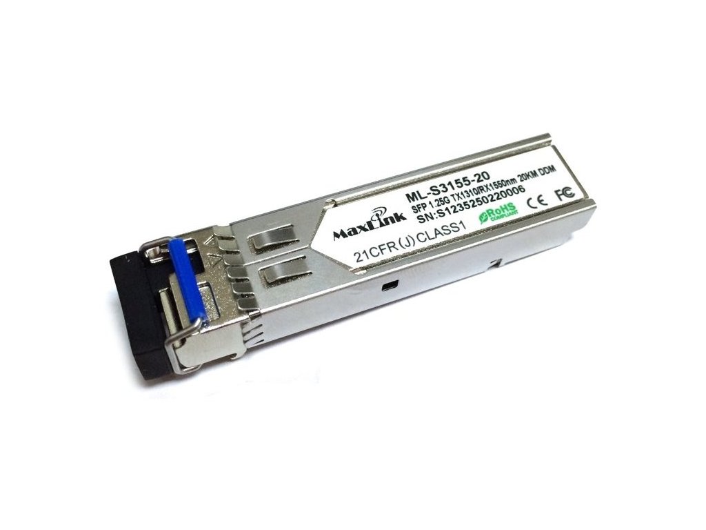 MaxLink 1.25G SFP optický modul, WDM(BiDi), SM, Tx 1310/Rx1550nm, 3km, 1x LC konektor, DDMWDM SFP moduly používají pro obousměrné spojení jen jednoho optického vlákna, umožňují tím dvojnásobně zvýšit hustotu spojení bez nutnosti výměny optické trasy. SFP modul podporuje monitoring, neboli DDM funkci. Modul je kompatibilní se všemi aktivními prvky od MikroTiku a také se zařízeními jiných výrobců "cisco compatibile".