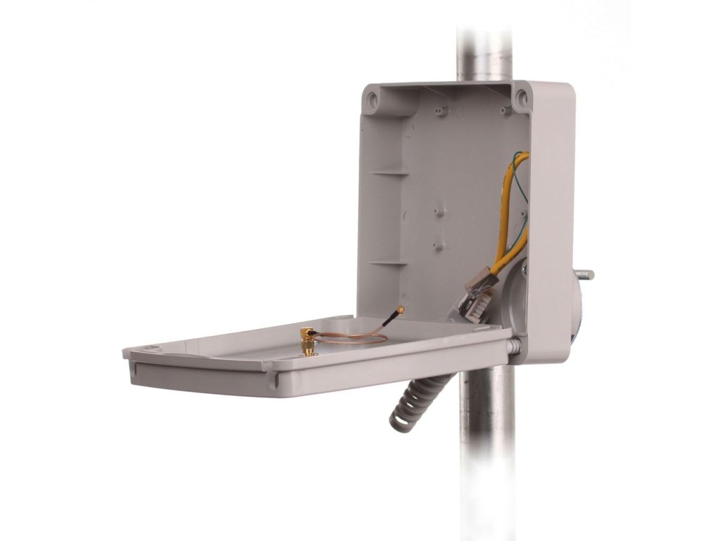 Outdoor box s panelovou anténou se ziskem 19dBi. Srdce antény tvoří PCB deska o tloušťce 1mm v provedení GoldFlash. Box je zhotoven z kvalitního UV stabilního ABS plastu. Unitř jsou 4 kovové distanční sloupky pro přišroubování UBNT WispStation5. V zadním plechu je průchodka PG11 pro UTP kabel. Držák antény je proveden z pozinkovaného ocelového plechu o tloušťce 2mm pro maximální pevnost, zároveň umožňuje natáčení antény v rozmezí 45° ve vertikální rovině.Je možno použít RB411, RB711, Wispstation.