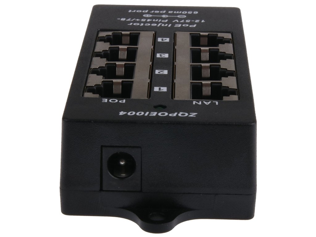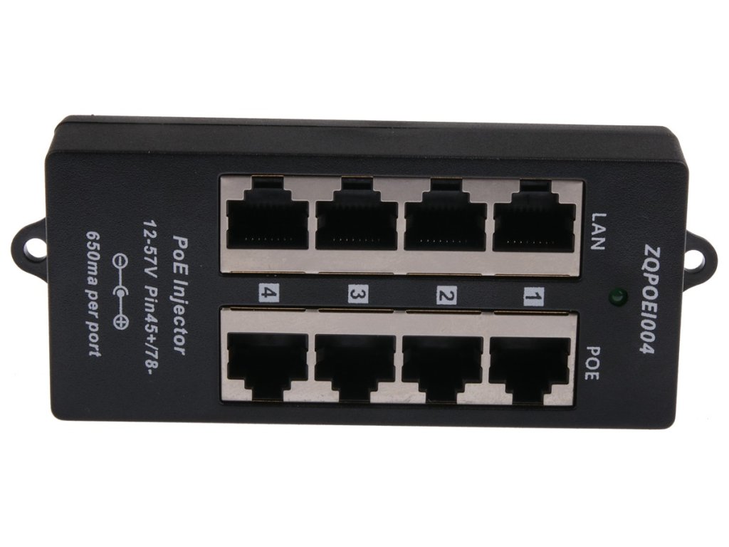 Pasivní PoE injektor lze použít v rozmezí 12 až 57V DC s max. proudem 650mA / port.
