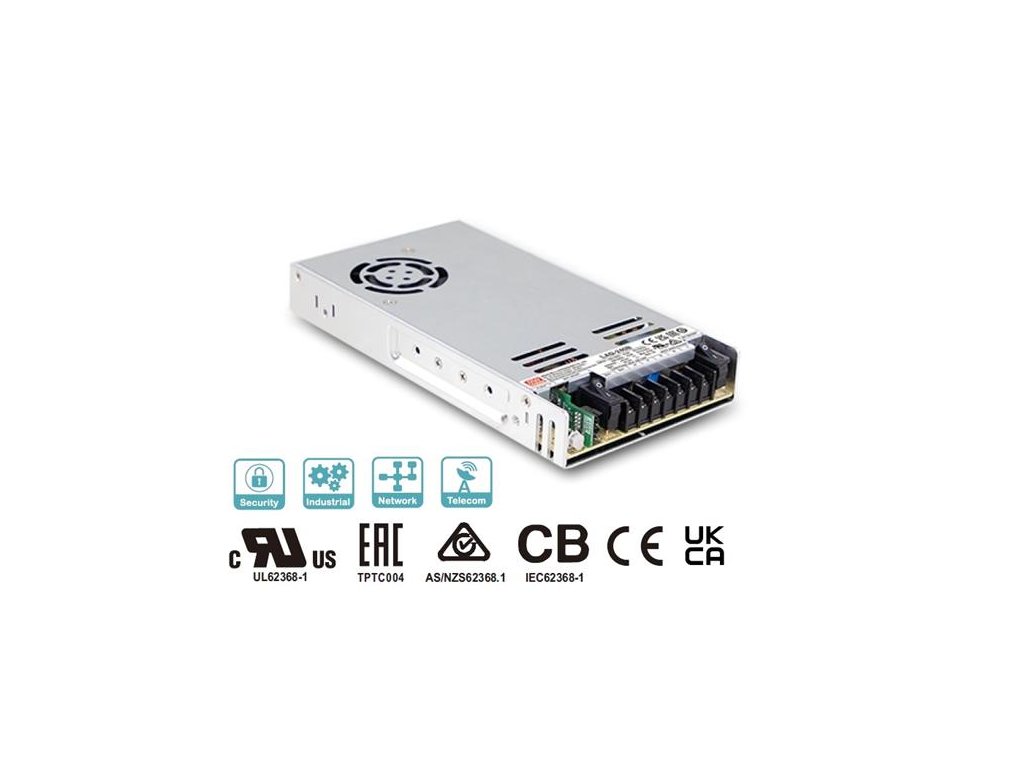 Profesionální spínaný napájecí zdroj Mean Well se zálohovací funkcí s výstupním napětím 41V a výstupním výkonem 240W pro aktivní prvky s odpovídajícím napájecím rozsahem.