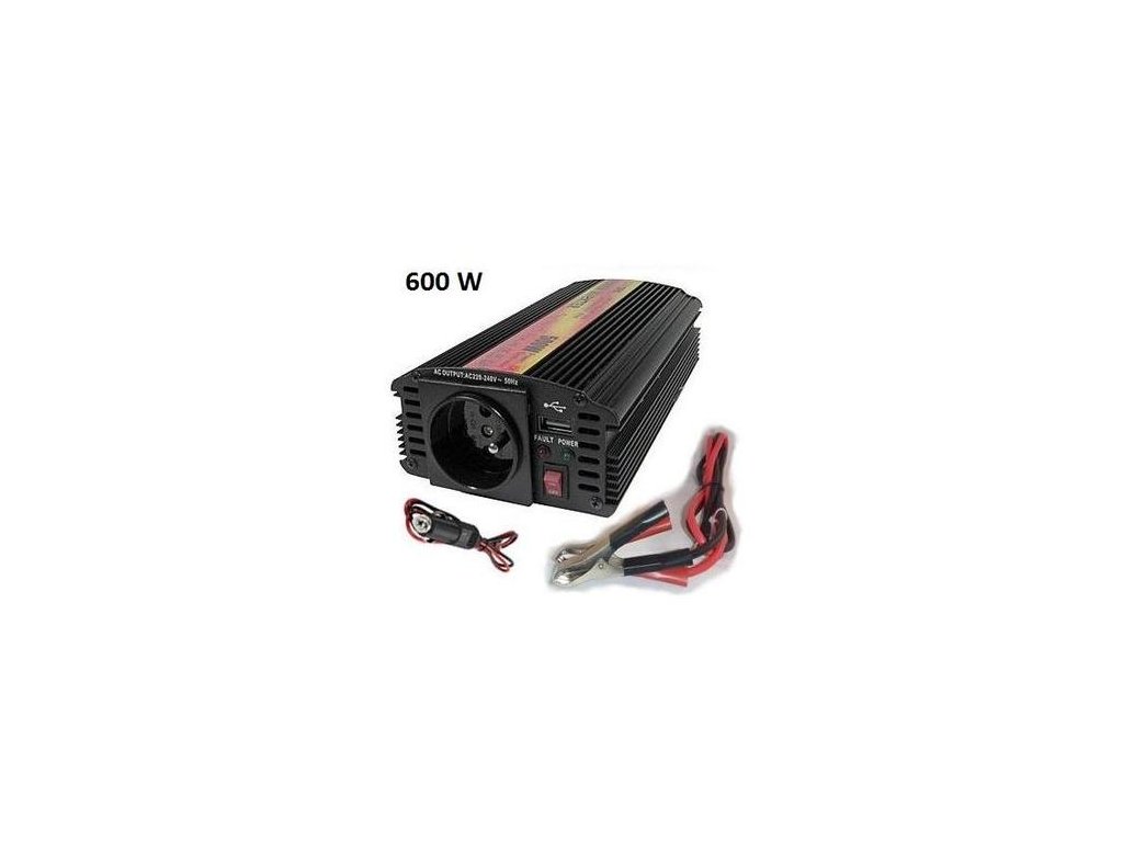 Měnič napětí Carspa CAR600U-122 12V/230V+USB 600W, modifikovaná sinus