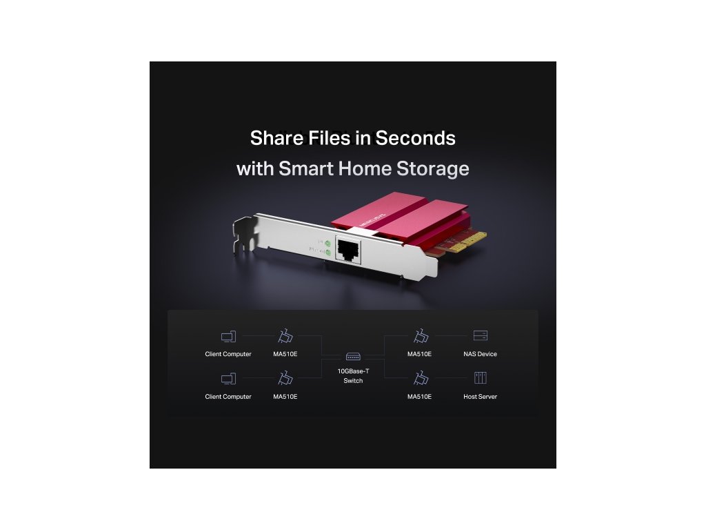 * Bleskové 10Gb/s připojení: Síťový adaptér MA510E nabízí až 10 Gb/s – tedy desetinásobek rychlosti běžných gigabitových adaptérů.