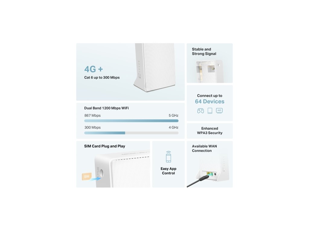 *Bezdrátový dvoupásmový gigabitový router 4G+ Cat6 AC1200 (MB230-4G)