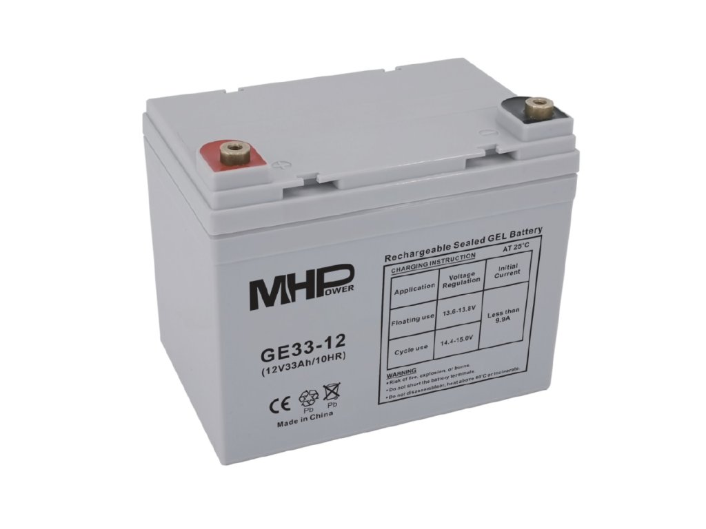 MHPower GE33-12 Gelový akumulátor 12V/33Ah, Terminál T2 - M6, Deep Cycle