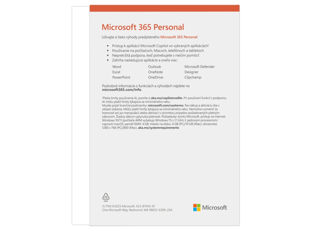 Microsoft 365 Personal FY25H2 Mac/Win, 1rok, SK