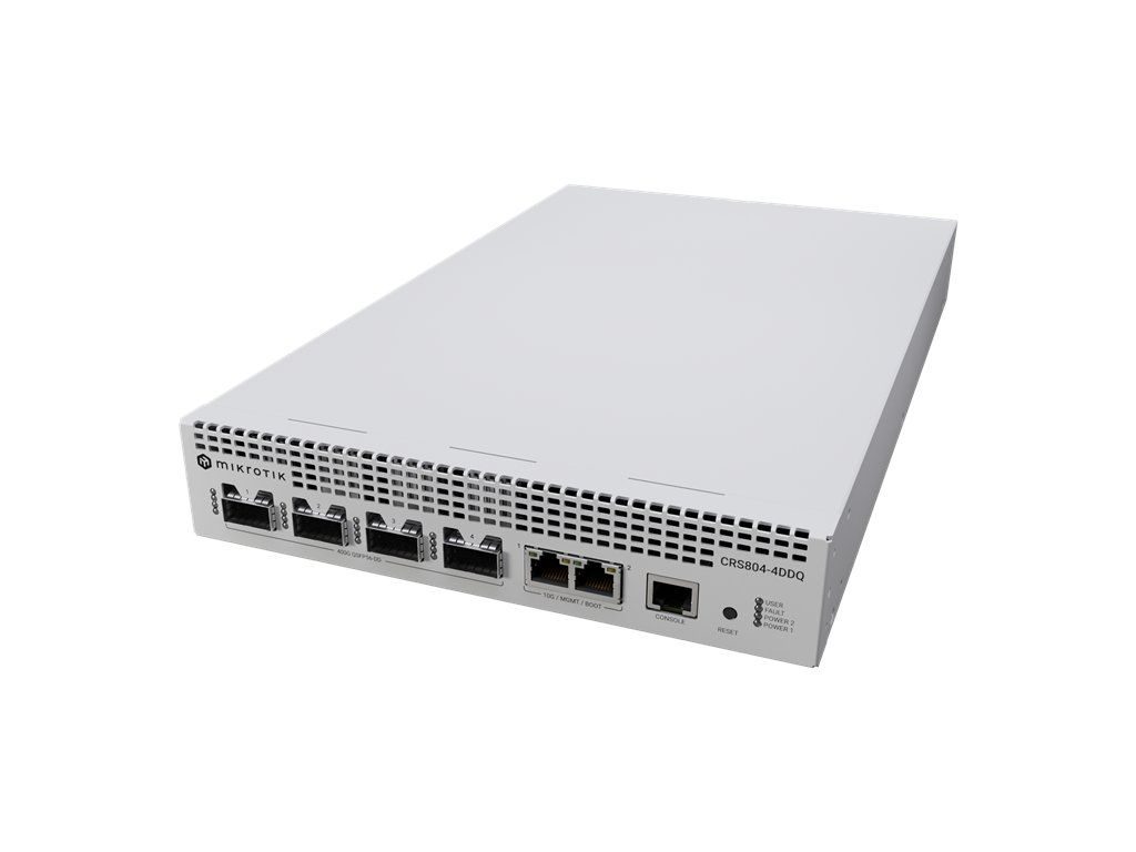 MikroTik CRS804-4DDQ-hRMCRS804-4DDQ-hRM je kompaktní 1U přepínač s propustností až 400 Gb/s, navržený pro AI clustery, vysokorychlostní storage sítě a agregaci páteřních spojů.