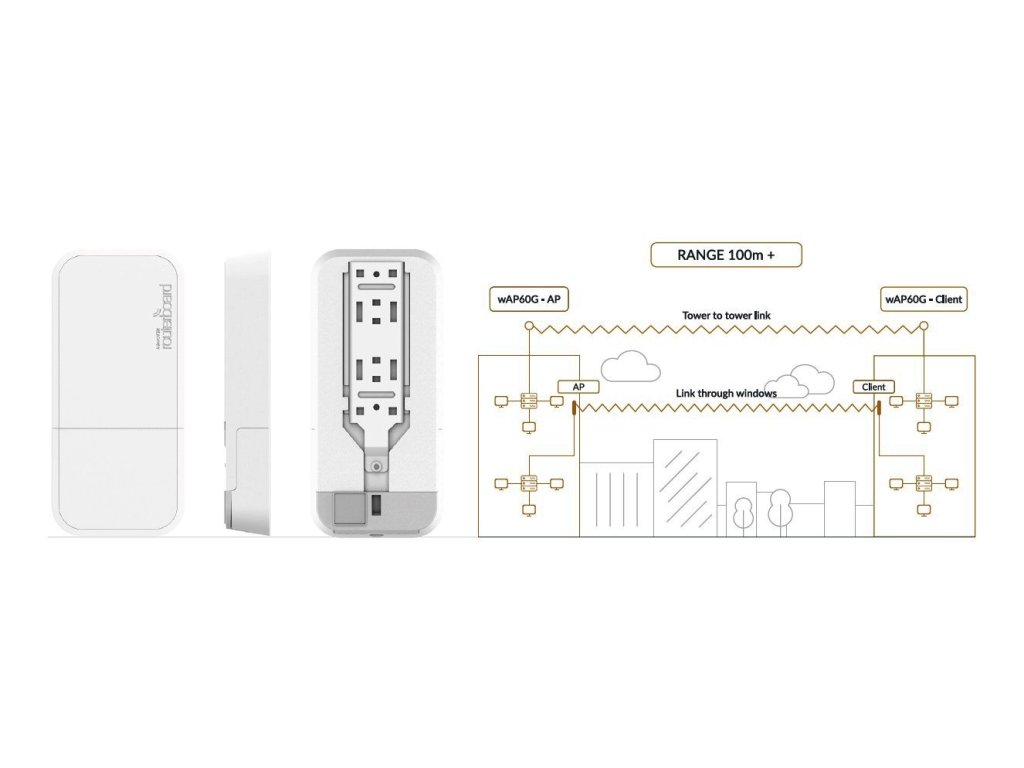 Systémové řešení platforem firmy MikroTik pro poskytovatele bezdrátového připojení k síti Internet.Sada 2ks venkovních AP, která nahrazuje gigabitový kabel - jedná se o plně duplexní bezdrátová pojítka standardu 802.11ad v bezlicenčním pásmu 60 GHz.