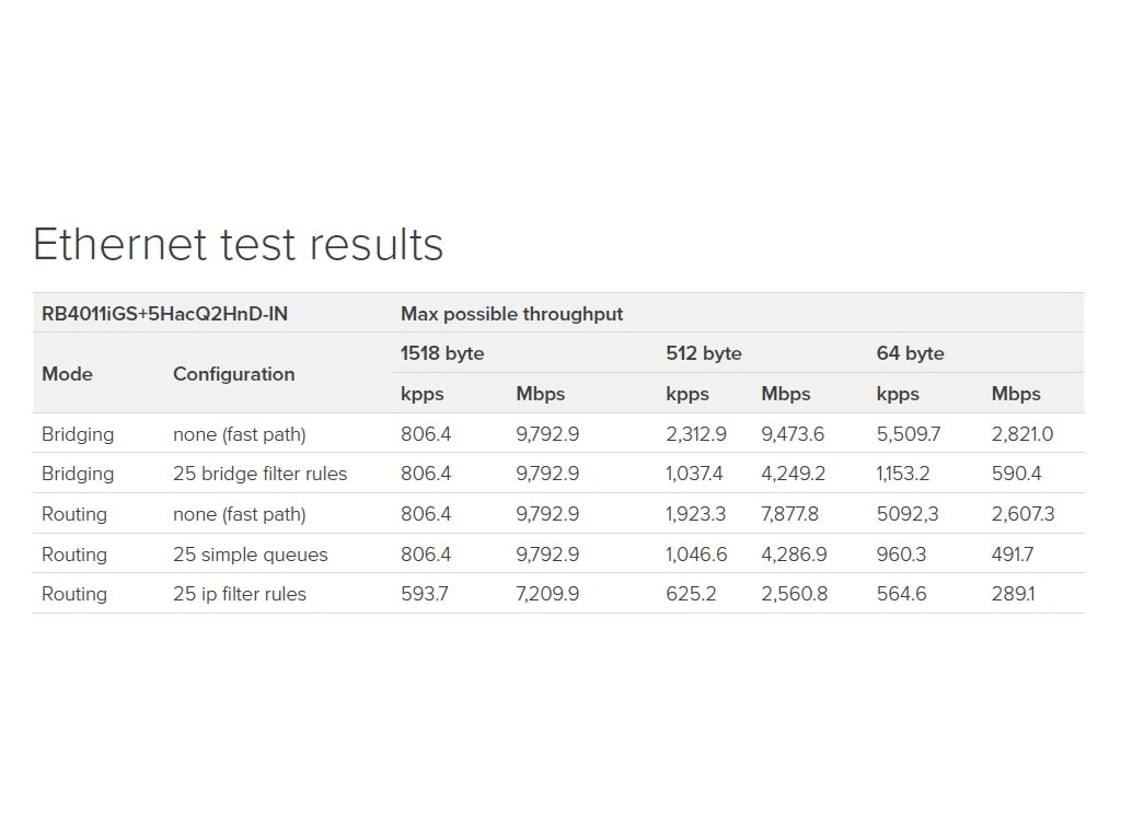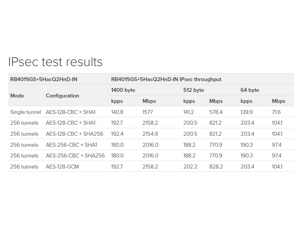 RB4011iGS+5HacQ2HnD-IN dokáže routovat až 2,5 Gbps, díky integrovanému akcelerátoru má v tunelu s robustním šifrování AES-256-CBC + SHA256 propustnost až 2 Gbps.