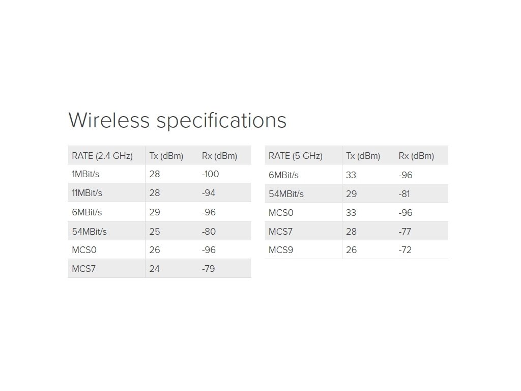 Citlivost (dBm): - 100 (1 mbps) až - 72 (MCS9) dBm
