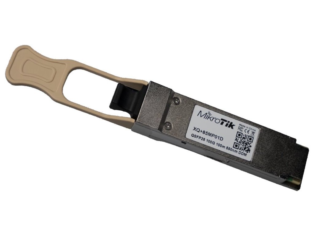 XQ+85MP01D je Multimode QSFP28 modul s maximální propustností 100 Gbps, 4 kanály po 25 Gbps, jedním 12-vláknovým MPO konektorem pro spojení až na vzdálenost 100 m. Modul je kompatibilní se všemi aktivními prvky od MikroTiku a také se zařízeními jiných výrobců "cisco compatibile" s QSFP28 portem.Modul má vestavěné digitální diagnostické funkce (DDMI) včetně monitorování optického výkonu a bude dobře fungovat v prostředí do 70° C. Modul byl navržen tak, aby splňoval ty nejtvrdší podmínky, včetně teploty a bude plnit funkci spolehlivého řešení pro všechna vaše zařízení s QSFP28 porty s rychlostí 100 Gbps.