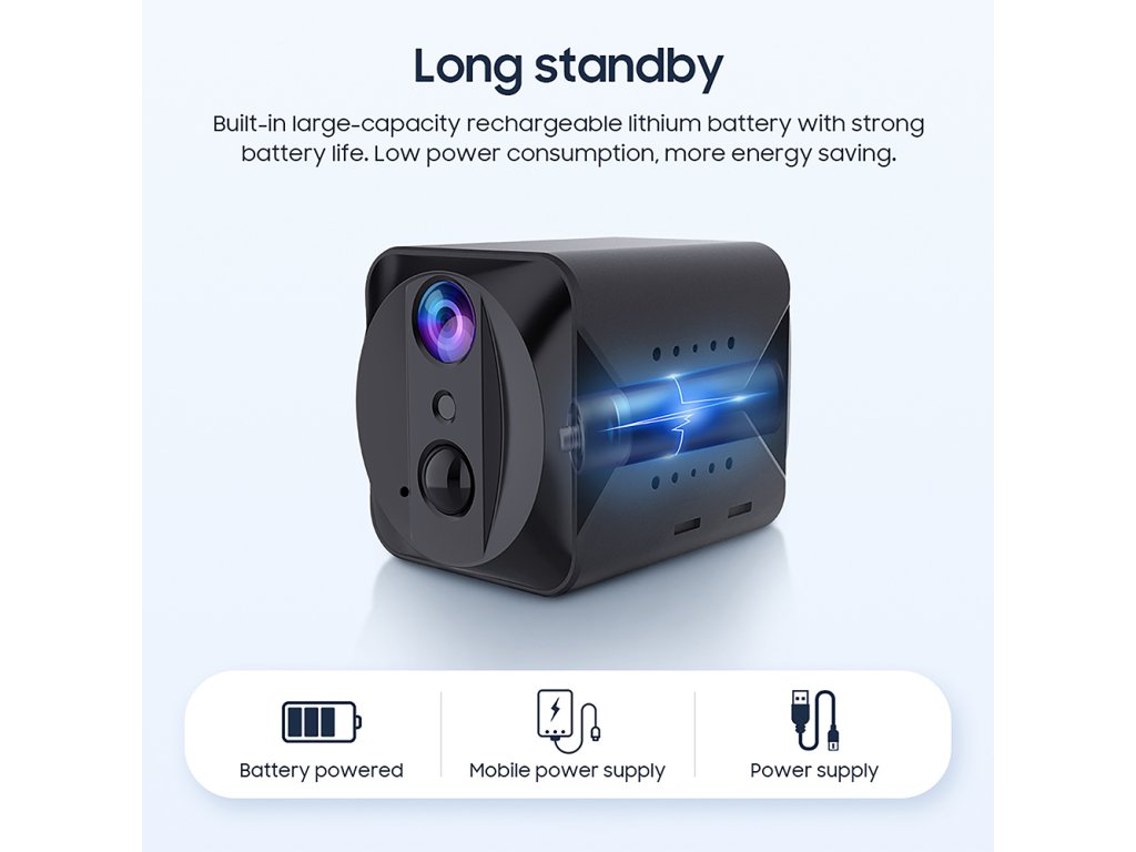 •Dlouhá výdrž baterie: Vestavěná 2500 mAh lithium-polymerová baterie vydrží v pohotovostním režimu až 2 měsíce, což minimalizuje potřebu častého nabíjení.