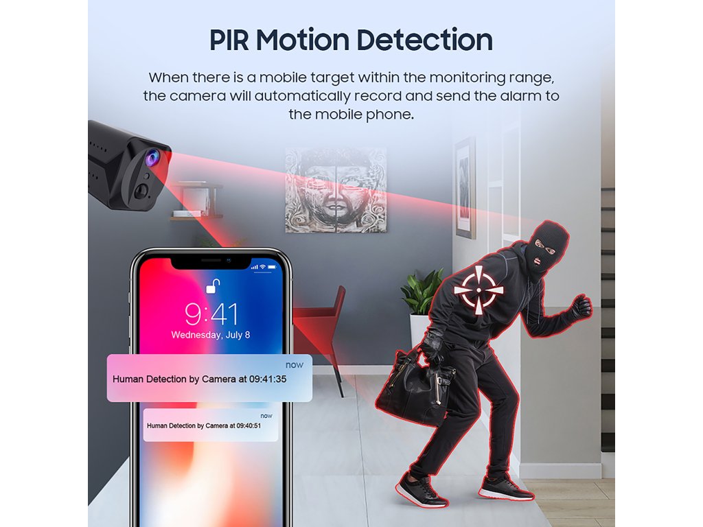 Minikamera Viking S309 Wifi nabízí vysoké rozlišení 1920 x 1080 a noční vidění s dosahem až 10 metrů. Díky vestavěné baterii s kapacitou 2500 mAh vydrží v pohotovostním režimu až 3 měsíce.