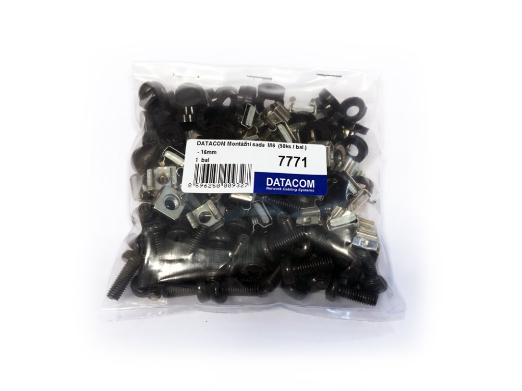 DATACOM Montážní sada M6 (50ks/ bal.) - 16mm BLACKDATACOM Montážní sada M6 je kompletní balení obsahující 50 kusů montážních sad, navržených pro efektivní instalaci a uchycení komponentů do datových rozvaděčů. Tyto montážní sady jsou vhodné pro použití s jakýmkoli typem 10" a 19" datových rozvaděčů, bez ohledu na to, zda se jedná o nástěnné či stojanové varianty.