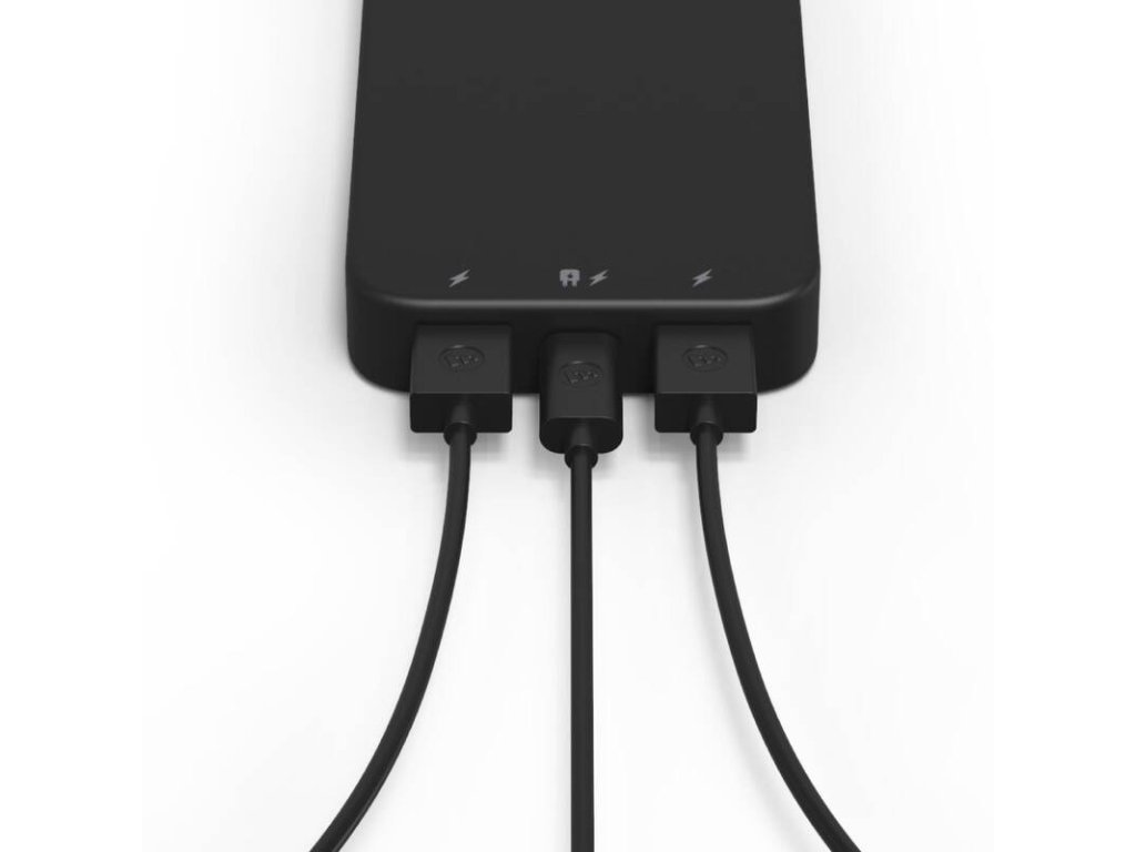 Powerbanka Mophie Powerstation disponuje dvěma porty USB-A a portem USB-C, díky čemuž můžete pohodlně dobíjet tři různá zařízení současně.