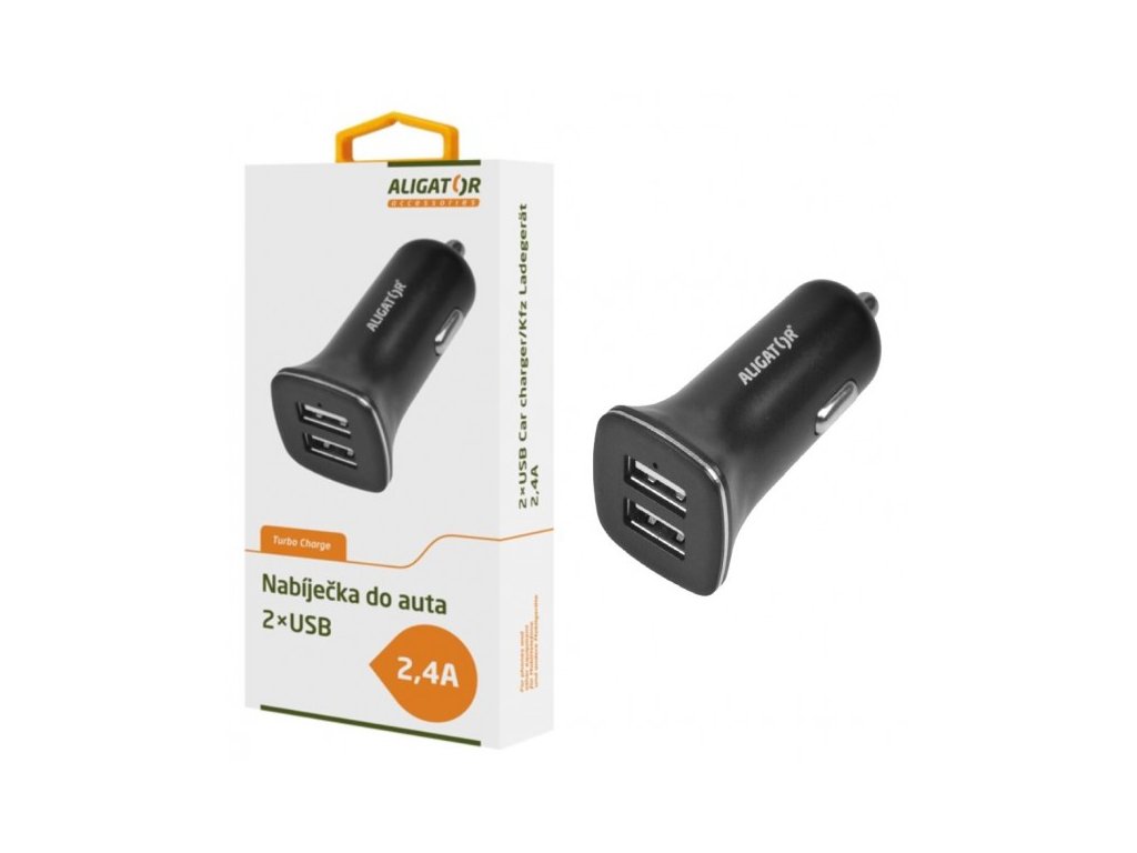 Nabíječka do auta ALIGATOR s 2xUSB výstupem 2,4A, Turbo charge, černá