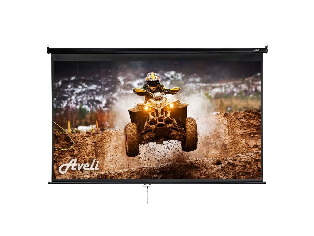 Nástěnné projekční plátno AVELI, 204x115cm (16:9) 92", černý tubus